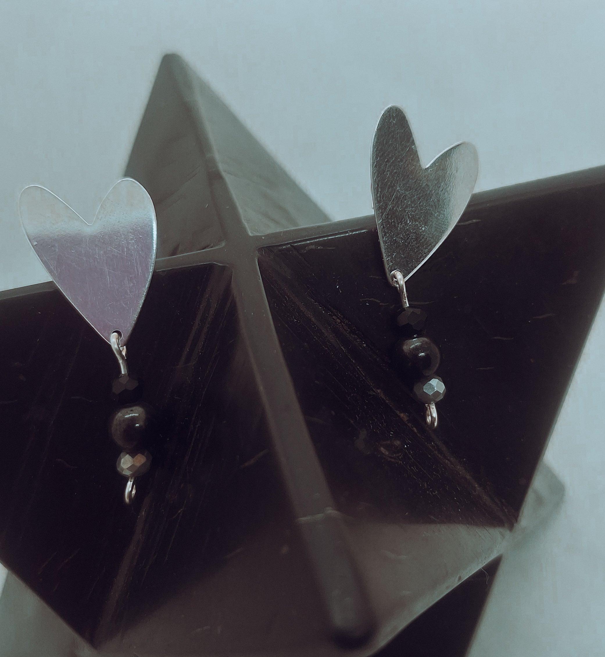 Los Aros Corazón Guardián están confeccionados en baño de plata, con delicados cristales y shunguita, creando una pieza simple, elegante y energéticamente poderosa.