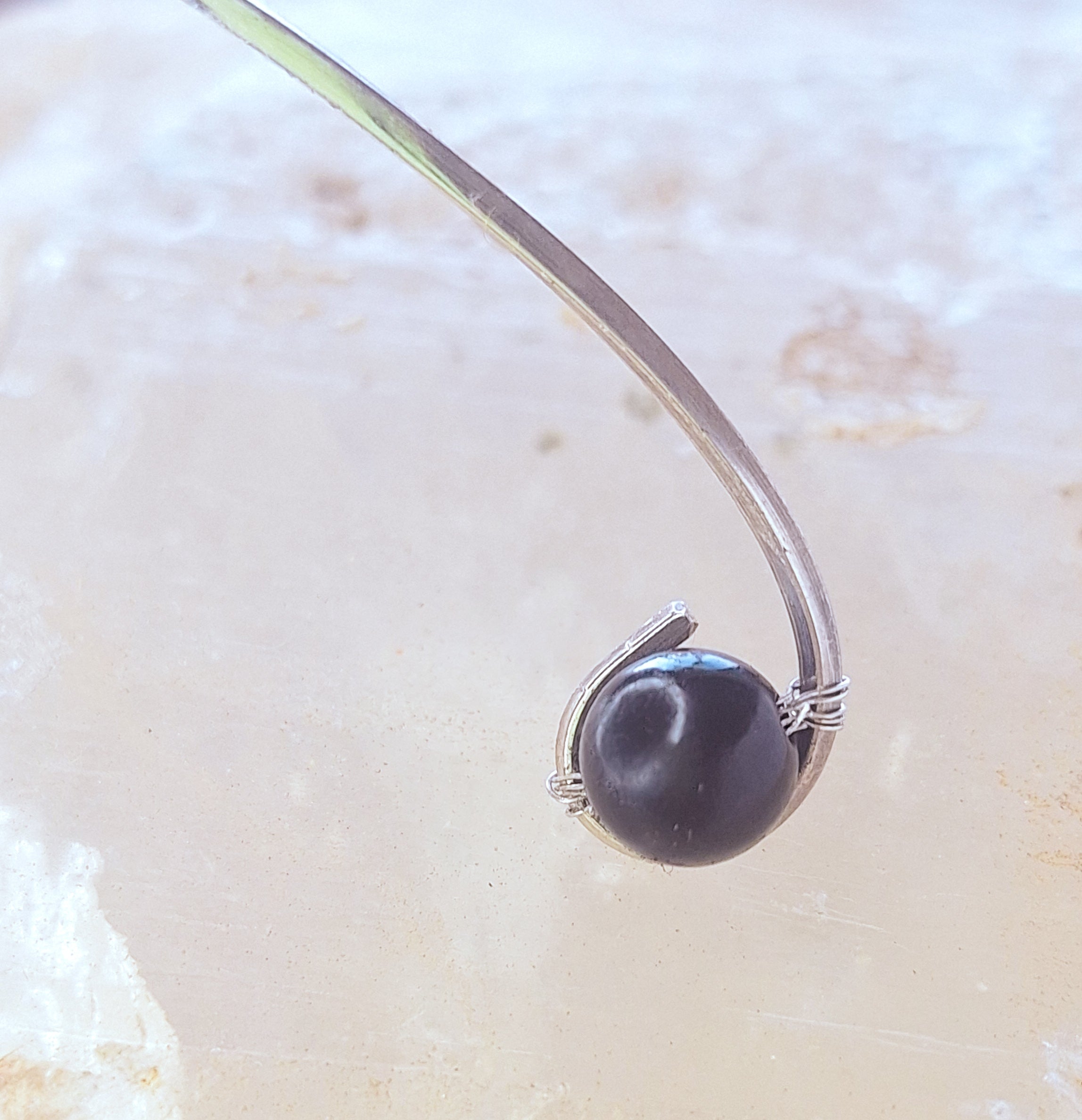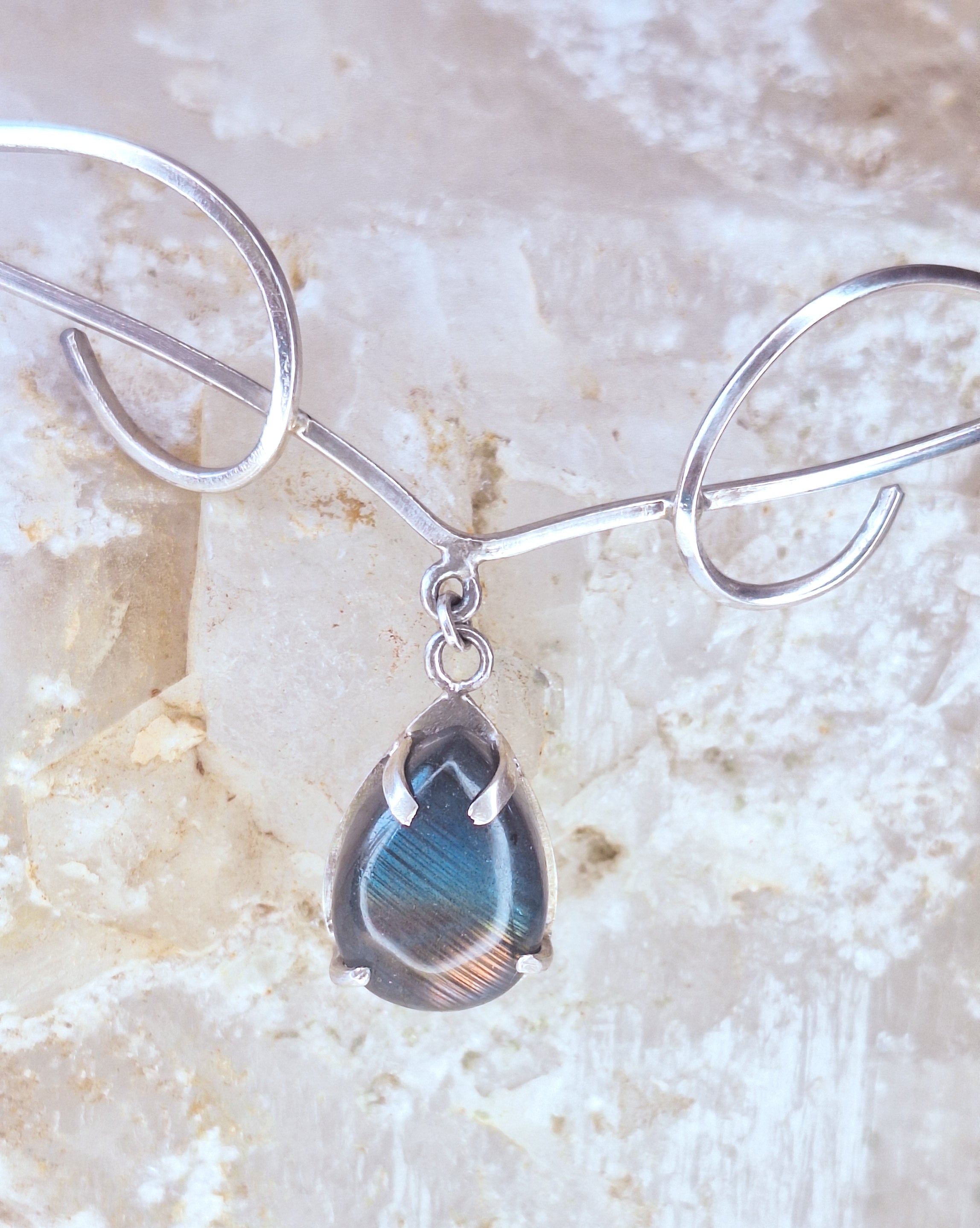 En el centro lleva Labradorita, conocida ancestralmente como la piedra de Merlín, el mago.