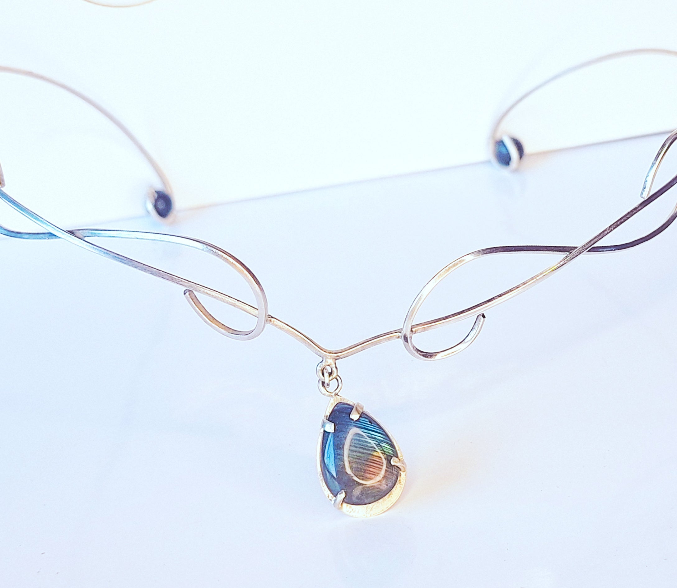 Corona/tiara VELO DE MERLÍN: Labradorita · Shunguita · Plata 925/ PIEZA UNICA•Hecha a mano